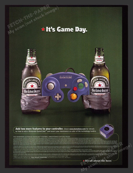 Heineken Nintendo GameCube "It's Game Day" 2000s Print Advertisement Ad 2002