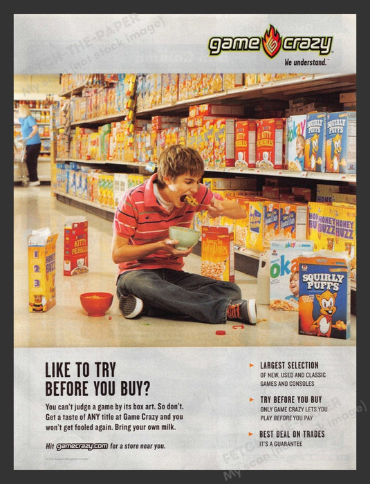 2005 Game Crazy "Try before you buy" Cereal Isle Video Game Print Advertisement