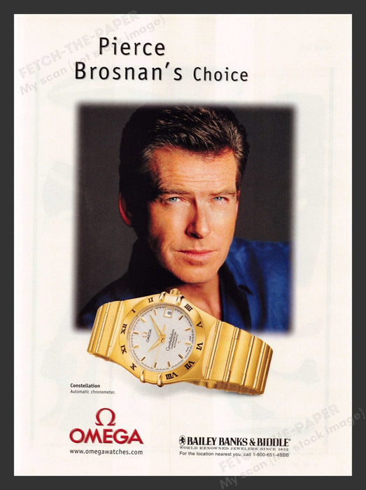 - Features Pierce Brosnan endorsing the Omega Constellation