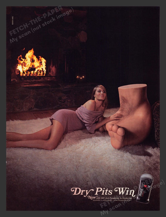 Axe 2000s Print Advertisement Ad 2004 Deodorant "Dry Pits" Rug Fireplace