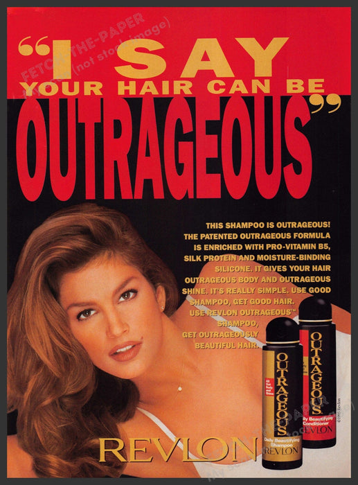 Revlon Outrageous Hair Cindy Crawford 1990s Print Advertisement Ad 1995